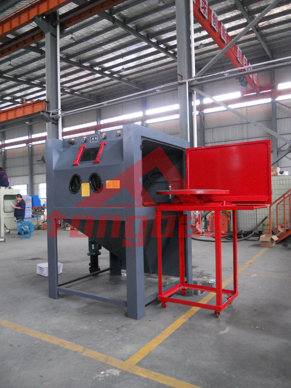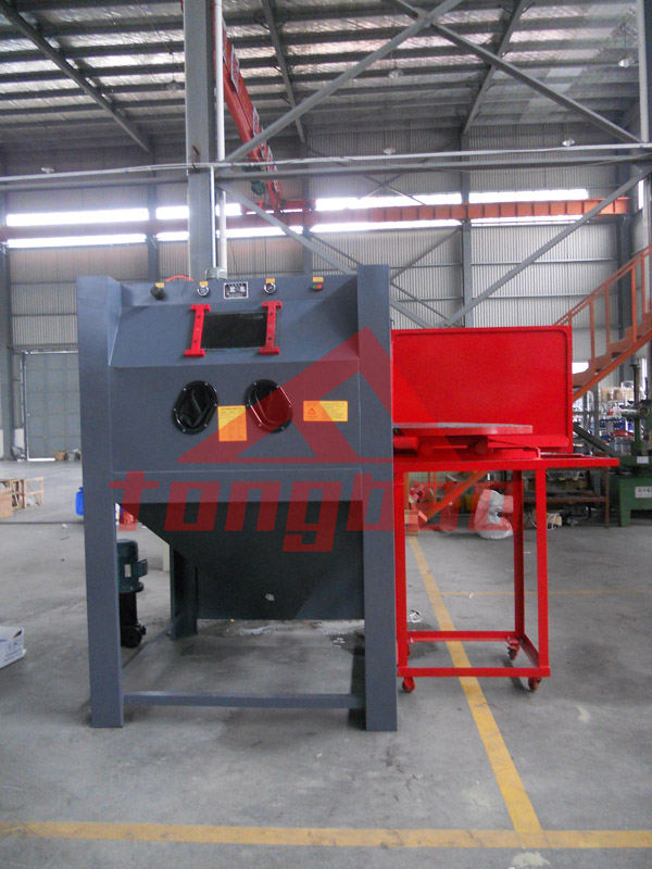 推車轉(zhuǎn)臺液體手動噴砂機順利完工