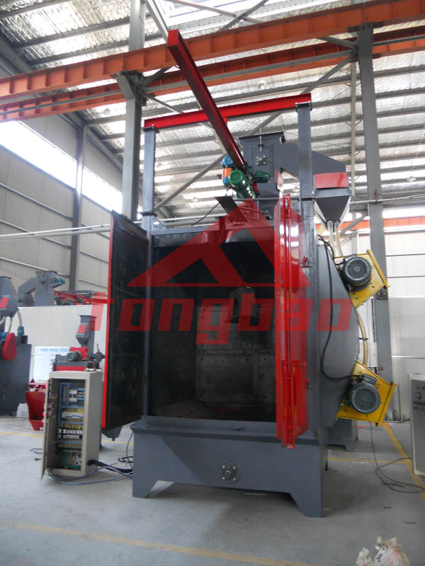 Tb-Q378C111型單吊鉤拋丸機(jī)按照客戶要求采用非標(biāo)制造,提高了吊鉤起重量及拋丸量,這臺拋丸機(jī)械具有拋丸量大、清理效率高、除塵效果好等特點。通寶系列拋丸機(jī)整體以灰色為主,艙門采用艷麗的紅色,產(chǎn)品整體效果美觀大方。
