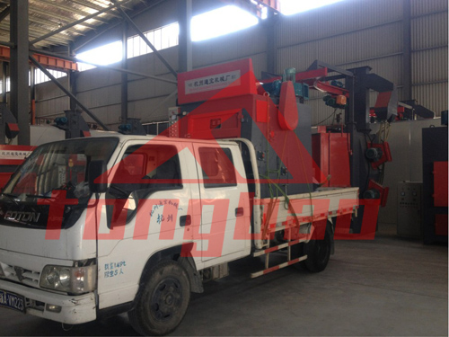 2012年10月18日 我公司為安徽黃山某軸承公司制造的履帶式拋丸機(jī)如期完工,準(zhǔn)備裝載運(yùn)往安徽黃山,預(yù)計(jì)于今天傍晚抵達(dá)該公司。我公司生產(chǎn)的履帶式拋丸機(jī)采用懸臂離心式拋丸器,使用壽命長(zhǎng),極其適用于軸承等工件的拋丸處理。