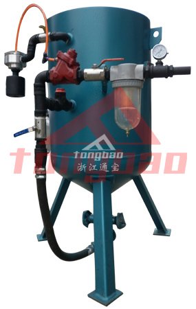 噴砂機(jī)的特點(diǎn)是設(shè)有進(jìn)氣壓力、噴砂壓力顯示,并裝有減壓閥,可以根據(jù)需要調(diào)節(jié)噴砂壓力。在壓縮空氣進(jìn)口裝有過(guò)濾器,以濾去壓縮空氣中的水分。